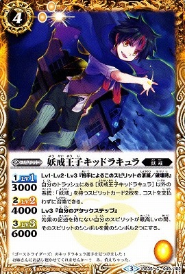 自分のトラッシュにある[妖戒王子キッドラキュラ]以外の系統:「妖戒」を持つスピリットカード2枚を、コストを支払わずに召喚できる。