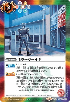 系統:「仮面」と「戦騎」を持つ自分のスピリットがアタックしたとき、自分のデッキを上から1枚オープンできる。