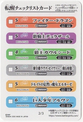 【BS52】転醒チェックリストカード【2/3】【2020】
