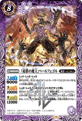 自分のトラッシュにあるカード名:「「憂鬱の魔王」ベールフェゴル」以外の紫1色のスピリットカード1枚を、2コスト支払って召喚できる。