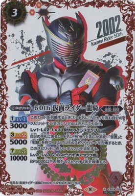 自分の手札にあるカード名に「50th」を含むか系統:「仮面」と「戦騎」を持つ、コスト7以上のスピリットカードを召喚するとき、このスピリットに赤シンボル2つを追加する。