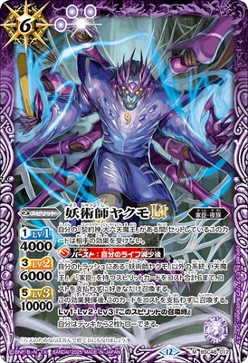 自分のトラッシュにある「妖術師ヤクモ」以外の系統:「天魔王」/「家臣」を持つスピリットカードをコスト合計6まで、コストを支払わずに好きなだけ召喚する。