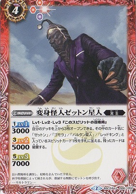 その中のカード名に「ゼットン」/「ゴモラ」/「バルタン星人」/「レッドキング」と入っているスピリットカード1枚を手札に加える。