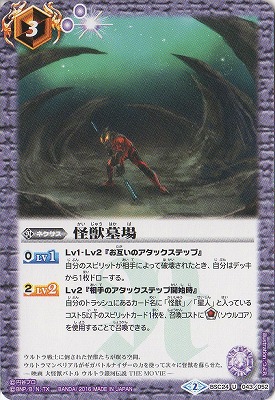自分のトラッシュにあるカード名に「怪獣」/「星人」と入っているコスト5以下のスピリットカード1枚を、召喚コストに(ソウルコア)を使用することで召喚できる。