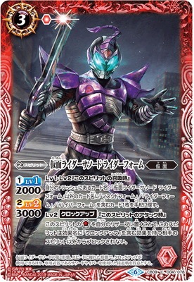 自分のトラッシュにあるカード名:「仮面ライダーサソード ライダーフォーム」以外のカード名に「マスクドフォ−ム」/「ライダーフォーム」/「ハイパーフォーム」を含むカード1枚を手札に戻す。