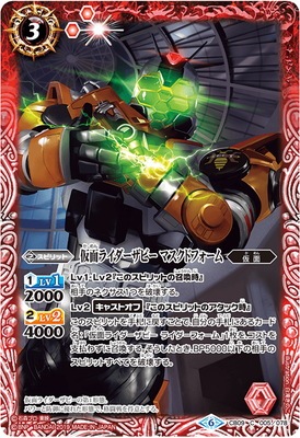 このスピリットを手札に戻すことで、自分の手札にあるカード名:「仮面ライダーザビー ライダーフォーム」1枚を、コストを支払わずに召喚する。